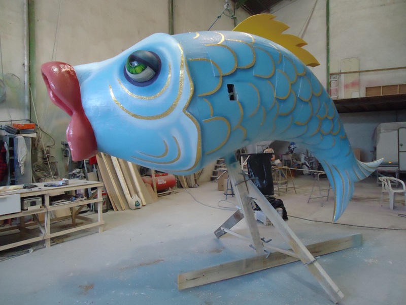 La sardina que va a plantar Toni Fornes se encuentra en estos momentos de camino a Murcia. La plantà comenzará a partir de las doce de la noche. Os mostramos fotografías en el taller, momentos antes de ser cargada para trasportar.