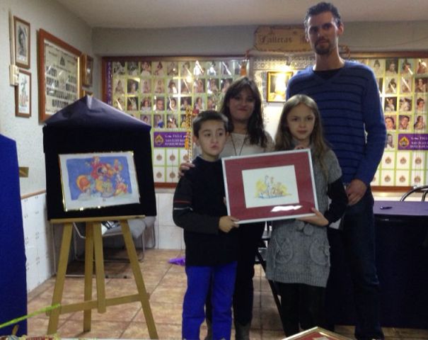 Samuel Martínez y María Esteban han presentado el proyecto infantil que están realizando para San Juan Bosco-Duque de Mandas. En el transcurso del acto les han regalado al presidente y fallera mayor infantil el boceto del ninot de la exposición.