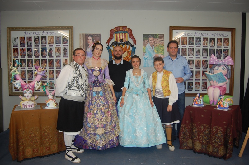 La comisión de la Plaza del Pintor Segrelles ha presentando el boceto y la maqueta de la falla que les realiza José López «Selfa» y homenajeado a la prensa fallera, grandes protagonistas de la escena trasera de la falla grande.