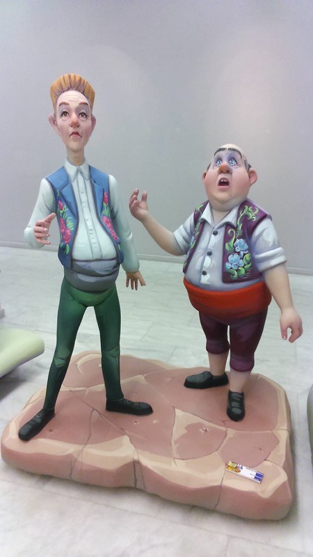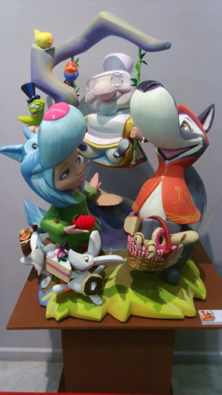 Fotografías de los ninots grandes e infantiles presentados en la exposición de las fallas de la localidad de Gandia.