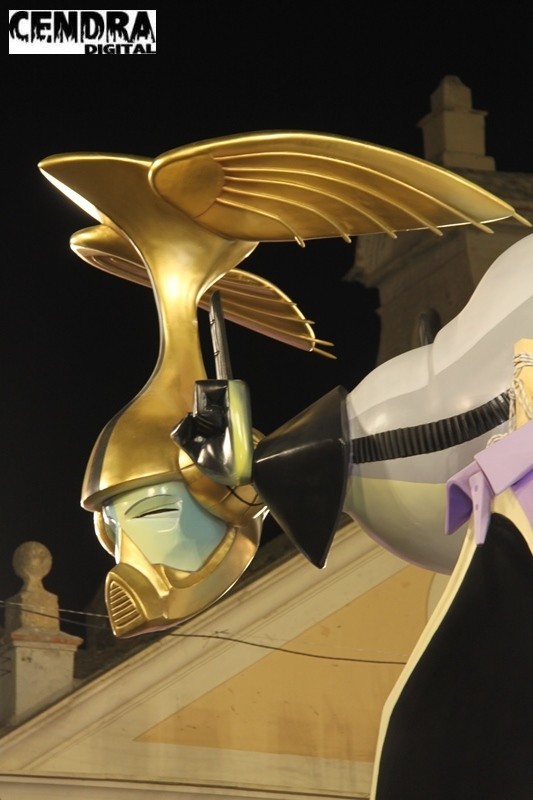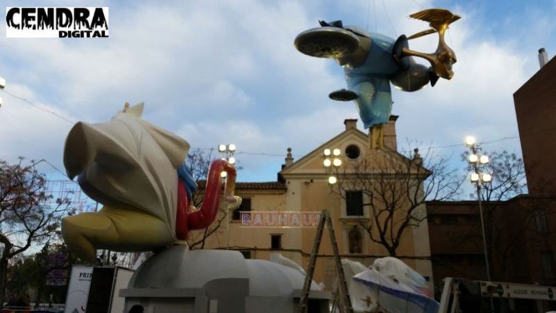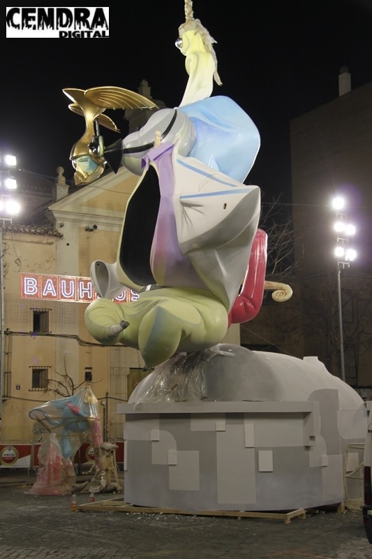 Fotografías del estado de la plantà de la falla de Latorre y Sanz, con diseño de Carlos Corredera, para la comisión de Na Jordana.