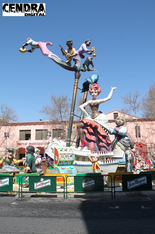 Fotografías al detalle de la falla de Luis Espinosa para la comisión de General Barroso-Litógrafo Pascual Abad, ganadora del octavo premio de sección 1A.
