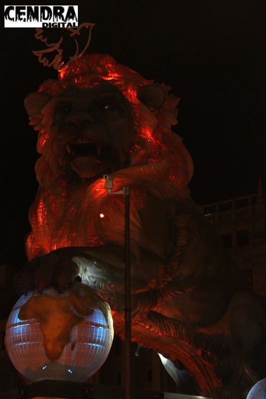 Fotografías al detalle de la falla de Manolo García para la Falla de la Plaza del Ayuntamiento.