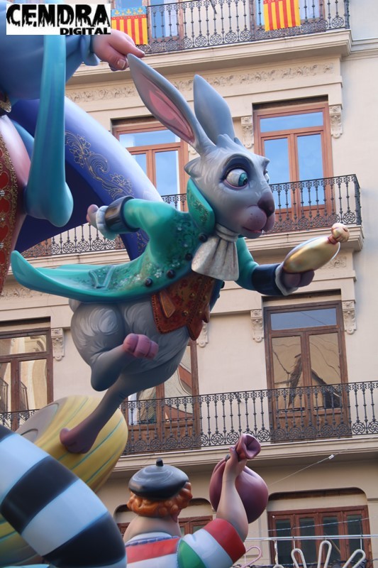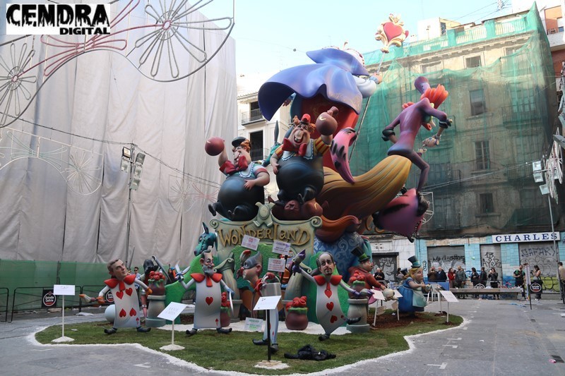 Fotografías de la falla ganadora del octavo premio de sección 1A plantada por José Sanchis en la Plaza de la Merced y cuyo lema es “Wonderland”.