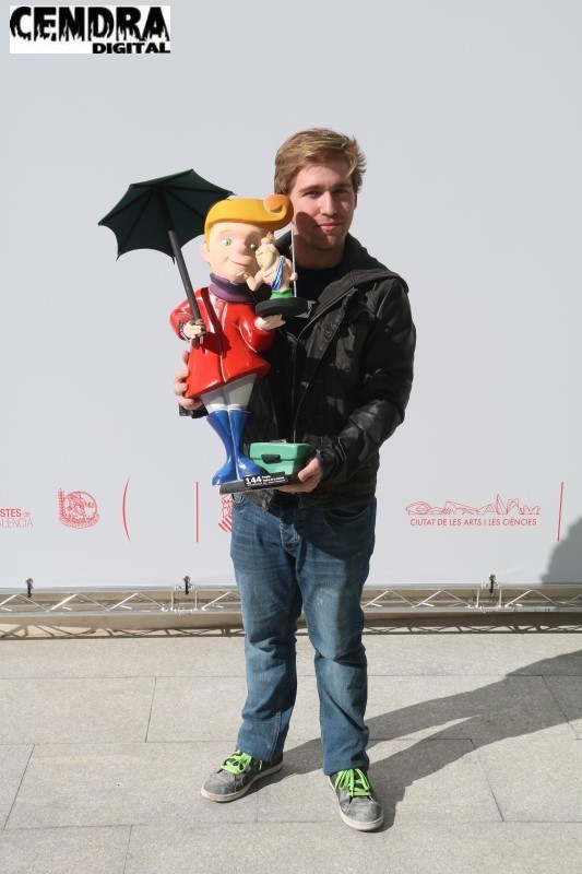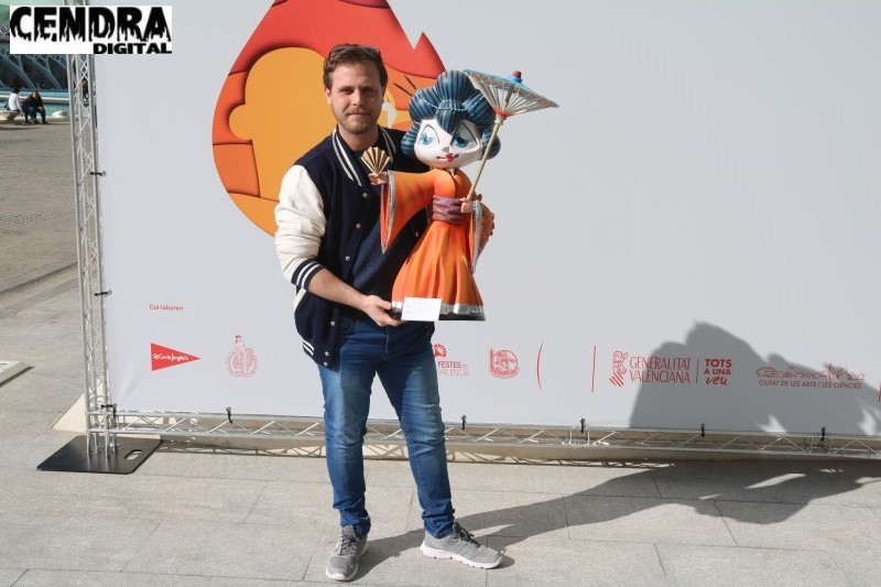 Rodrigo Núñez con su Ninot infantil para la Falla Calabazas-En Gall