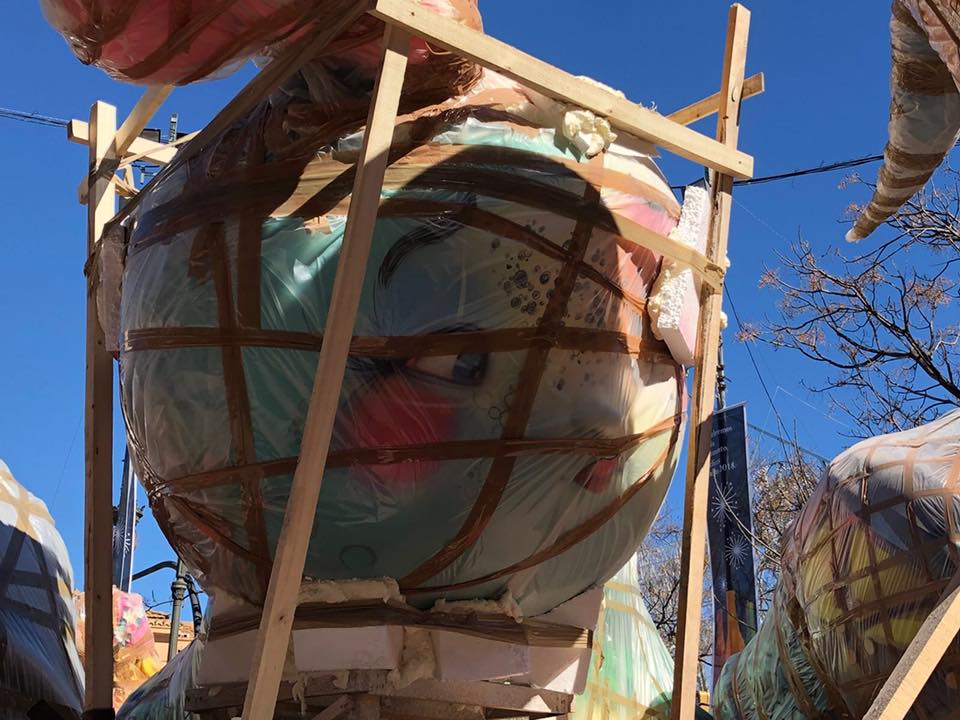 Estado de la plantà de la Falla Plaza del Pilar, obra del artista Paco Torres.
