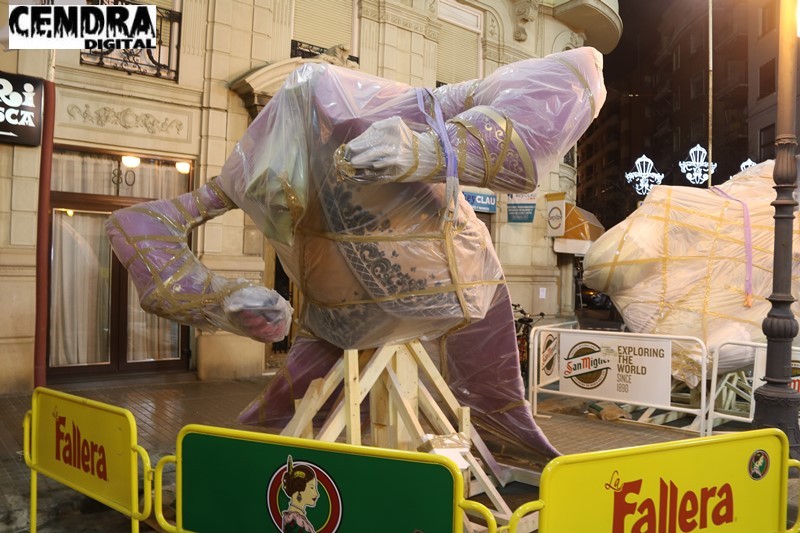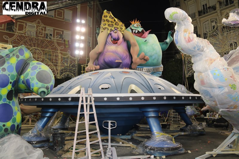 Estado de la plantá de la Falla Exposición, obra del artista Paco Giner.