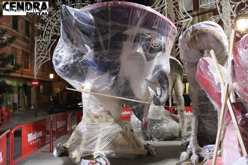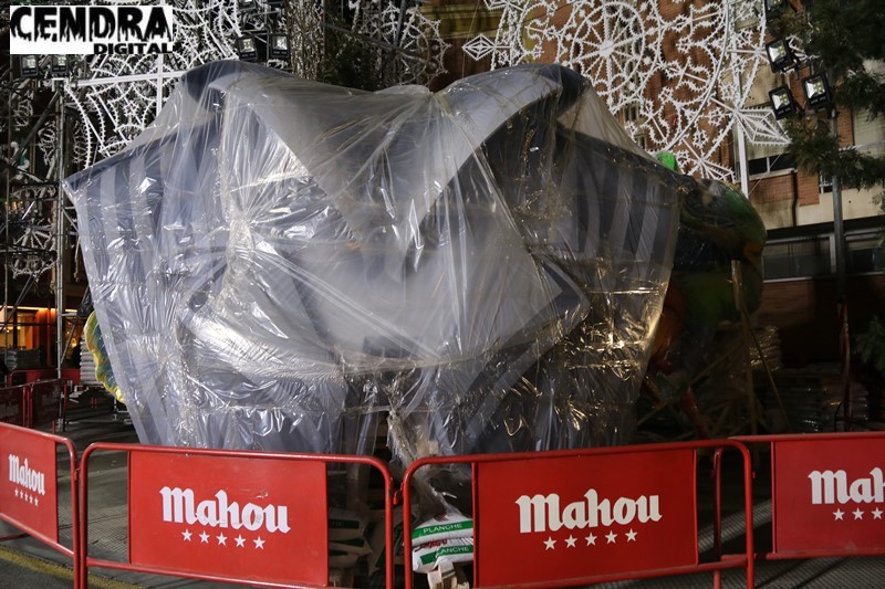 Estado de la plantá de la Falla Cuba-Literato Azorín, del artista Vicente Martínez.