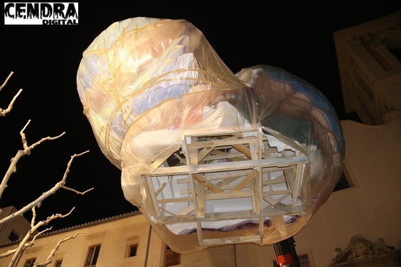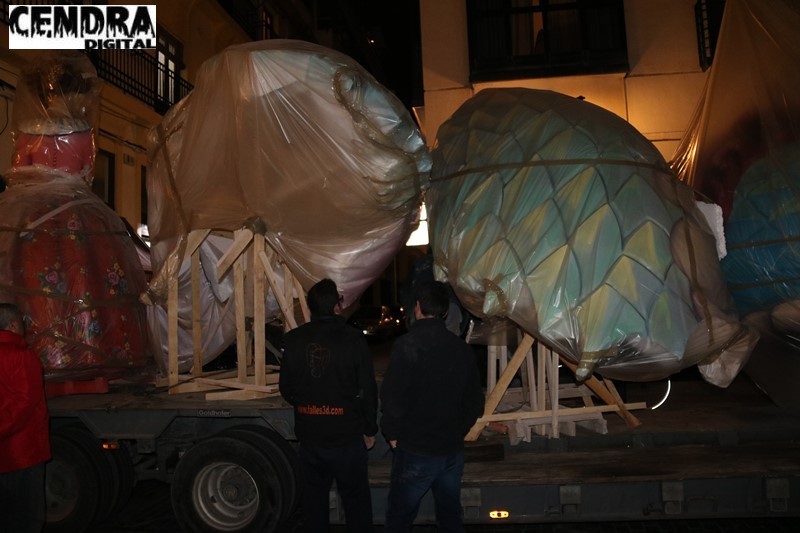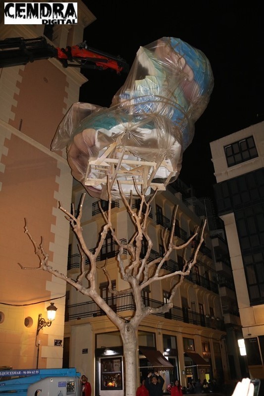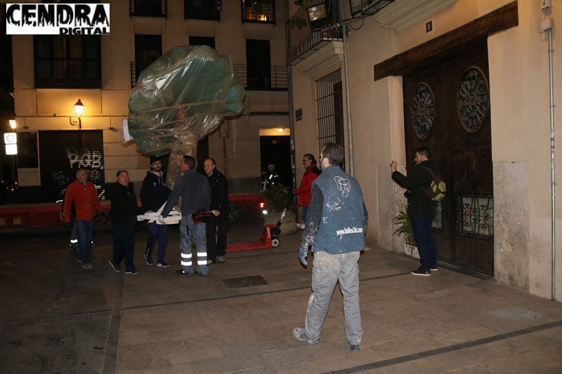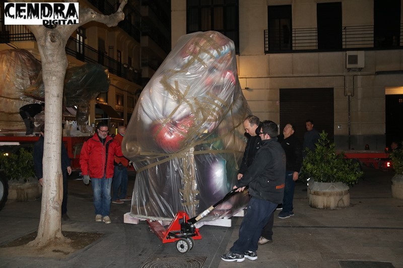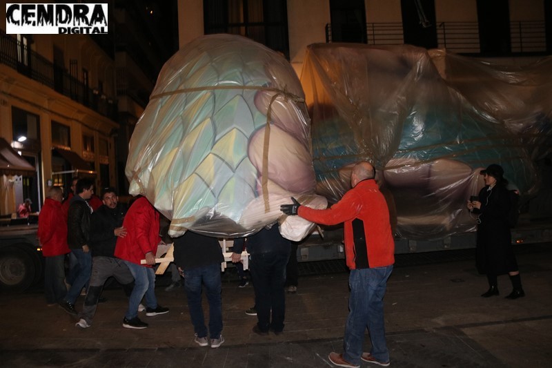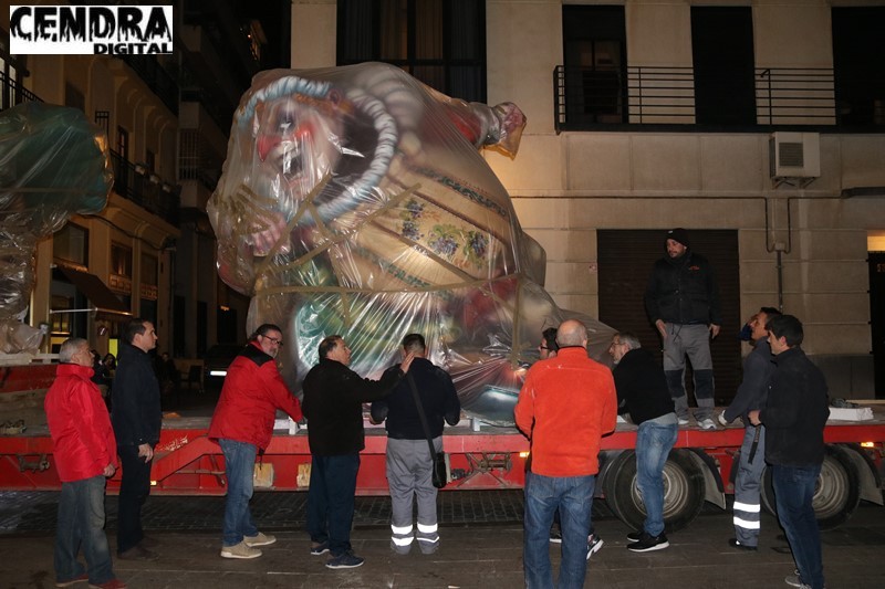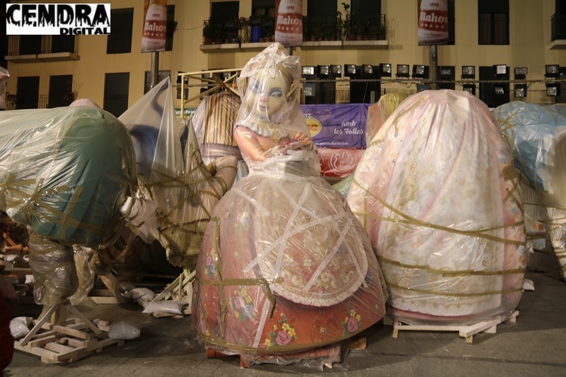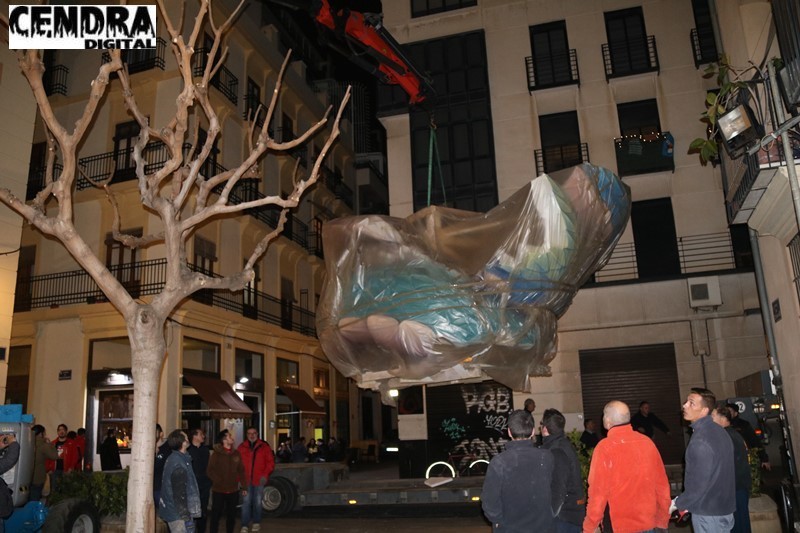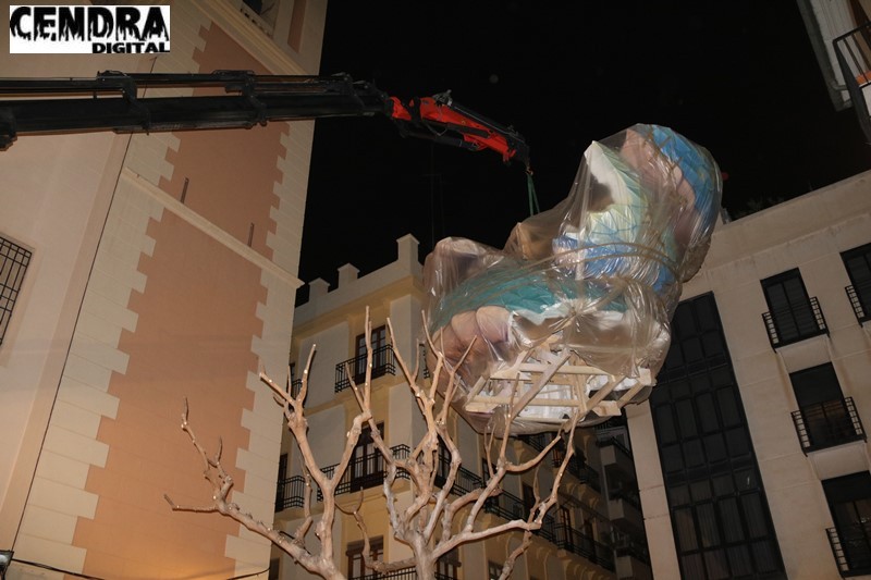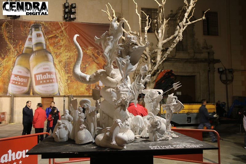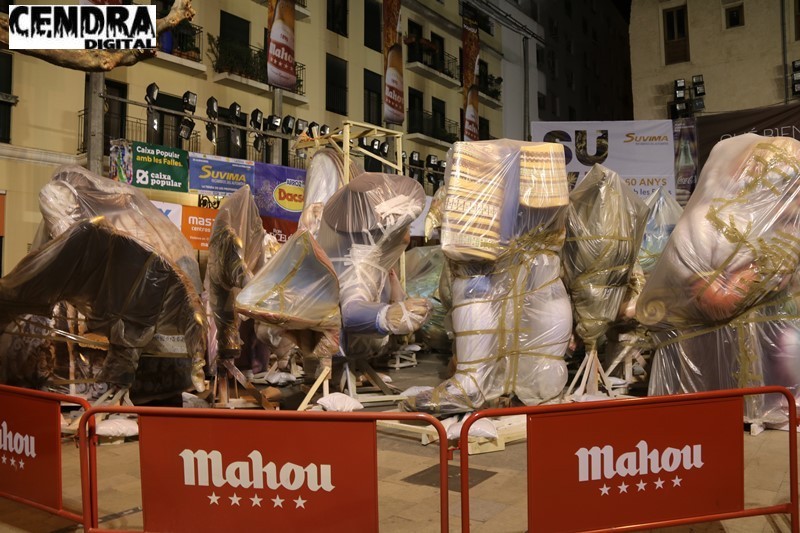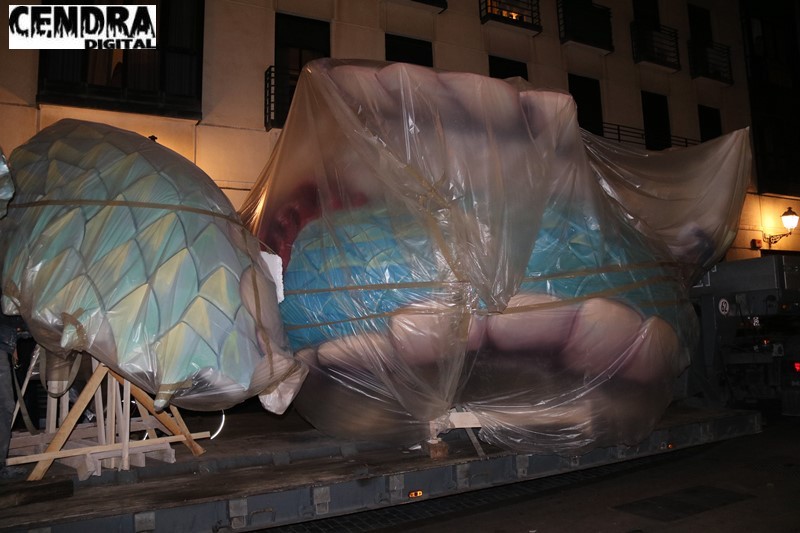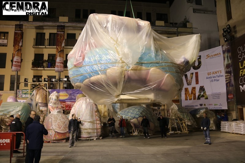 Estado de la plantà de la Falla Plaza del Pilar, obra del artista Paco Torres.