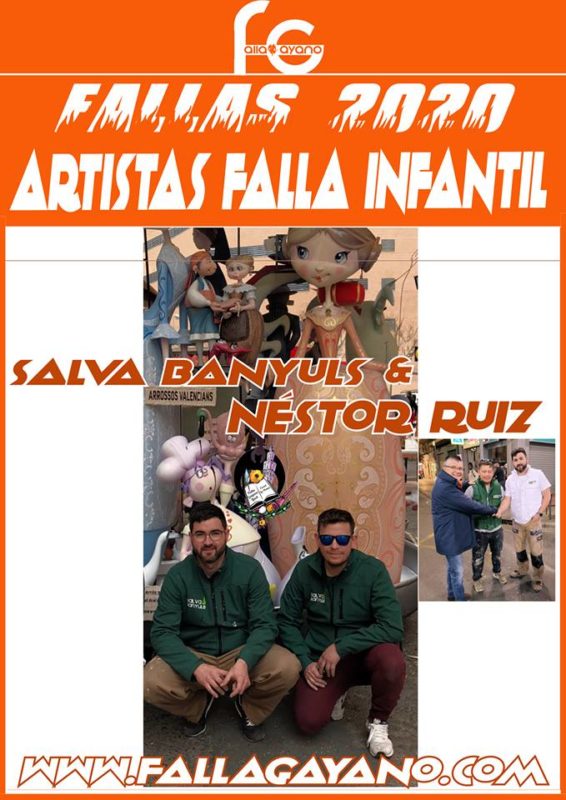 Tenemos el placer de anunciaros que los artistas falleros Salva Banyuls & Néstor Ruiz realizarán la falla infantil de Falla Gayano Lluch del 2020, coincidiendo además con el 10º aniversario de nuestra comisión plantando en la sección especial infantil.