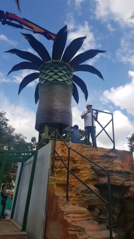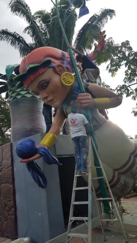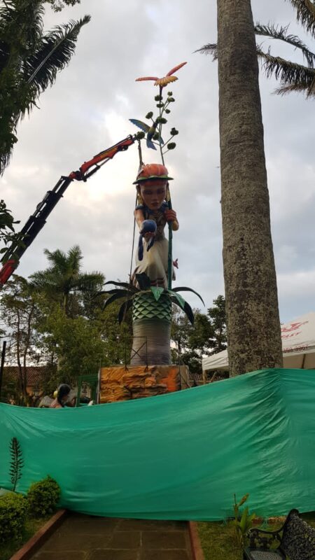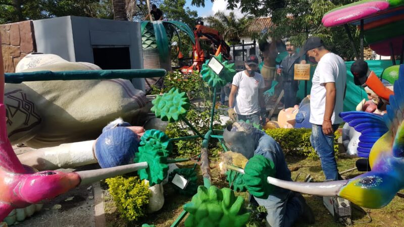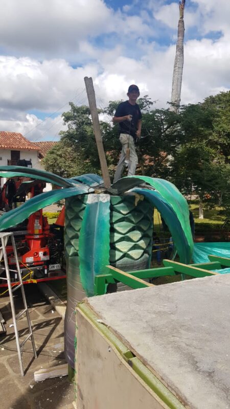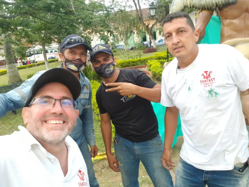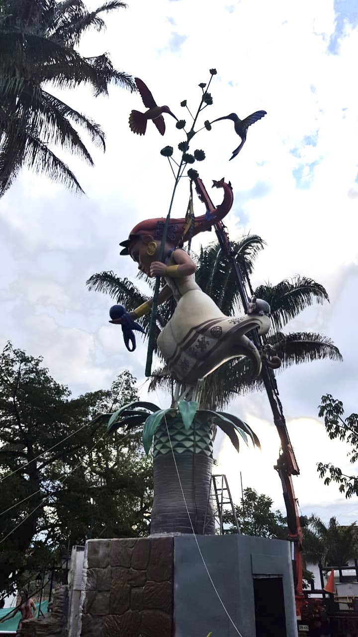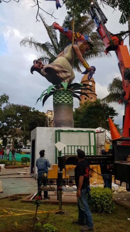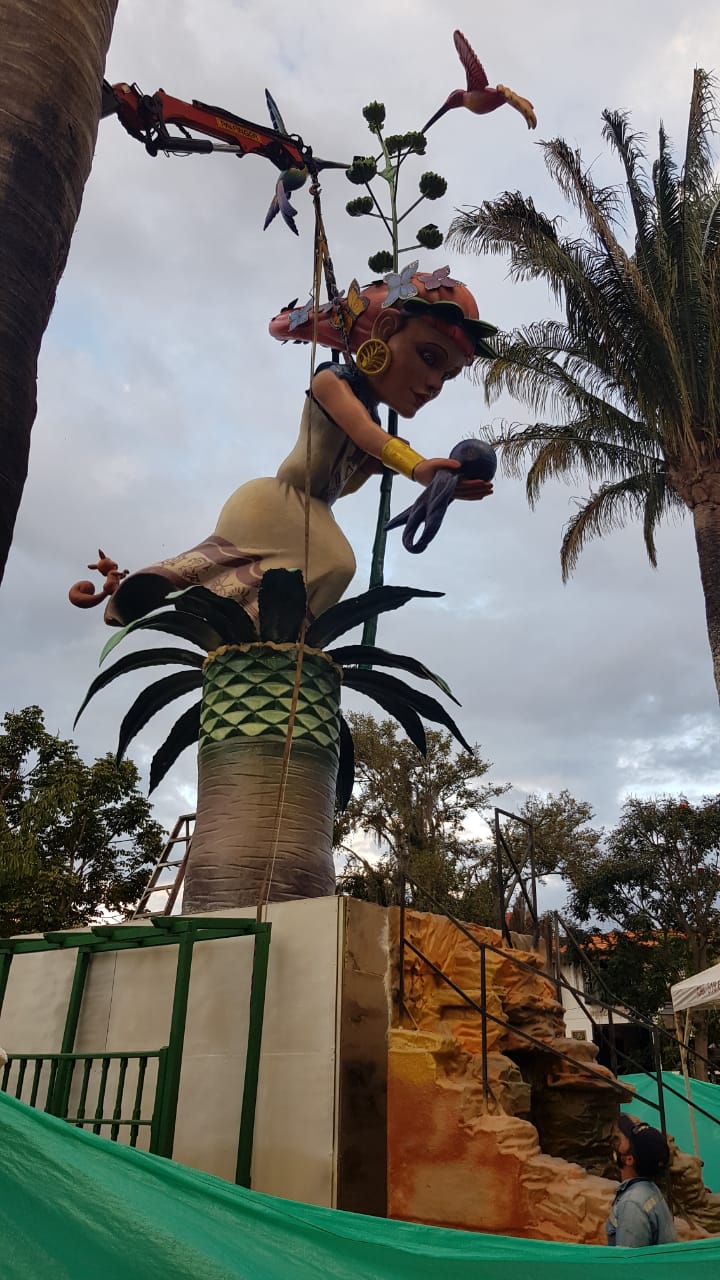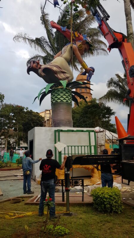 Segundo día de “plantà” (instalación) en Curití, Colombia, del monumento inspirado en las fallas. Es obra de la empresa Tematics Fantasy en la que se encuentra el artista Toni Fornes.