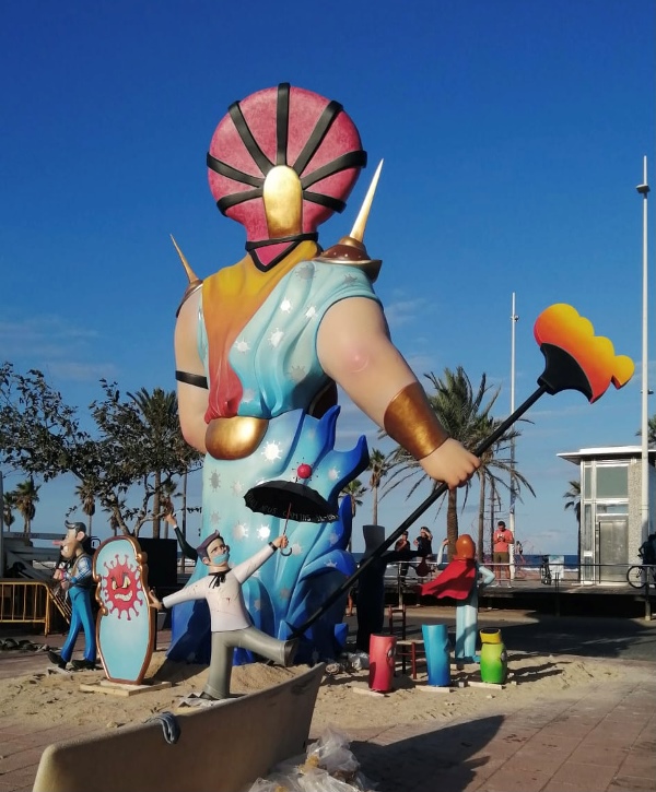 Gandia planta una falla para celebrar el 75 aniversario de la Junta Local Fallera. Es obra de los artistas Palacio i Serra.