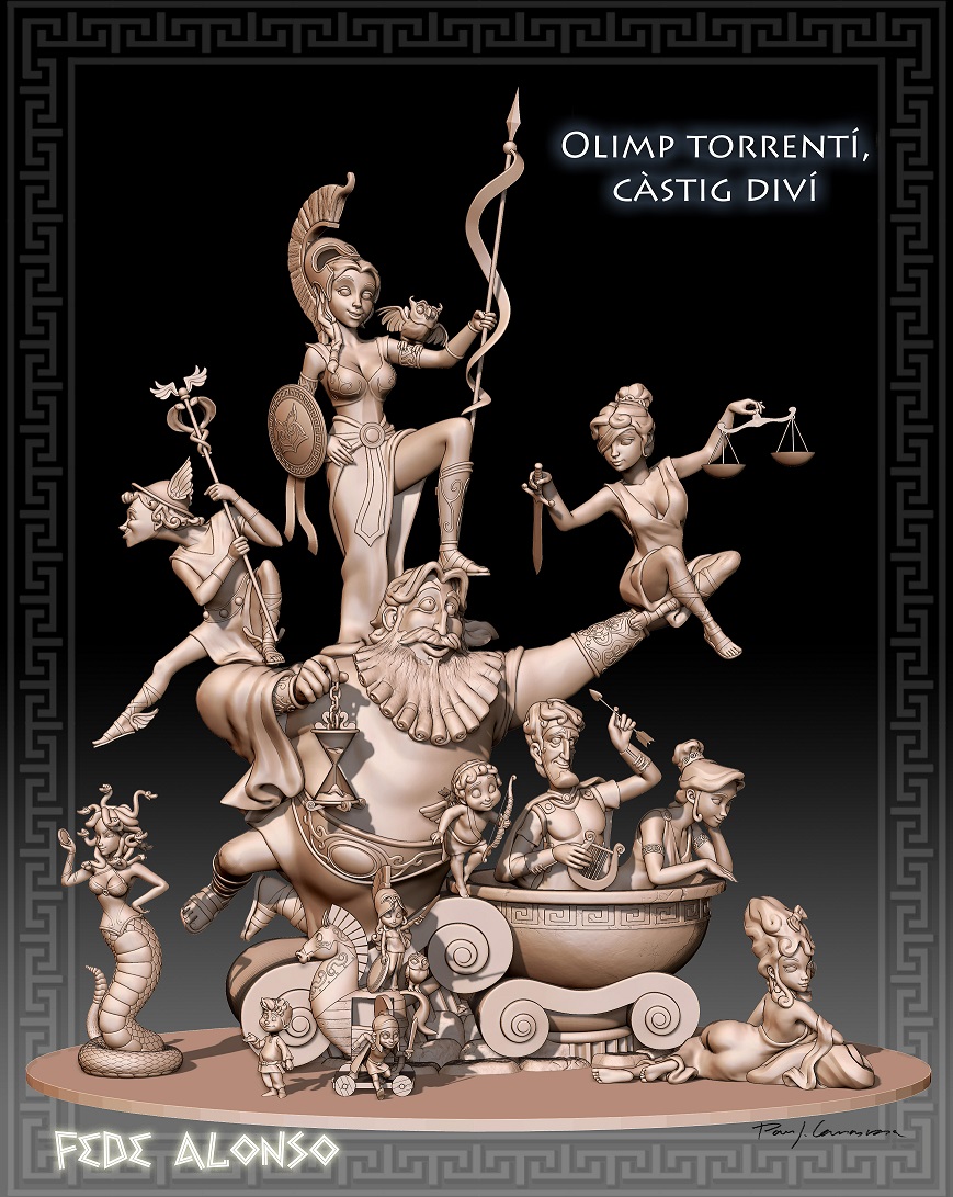 Fede Alonso es el encargado de dar forma a la falla grande de 2022, tras lograr en 2021 el Ingenio y Gracia de sección especial y el premio de la crítica local. La comisión del ensanche convierte Torrent en un Olimpo lleno de divinidades locales con sus maldiciones y problemas reales. “Olimp torrentí, càstig diví” es el lema de esta falla que no dejará indiferente a nadie por su crítica 100% local, donde la sátira política, social y fallera local será el plato fuerte.