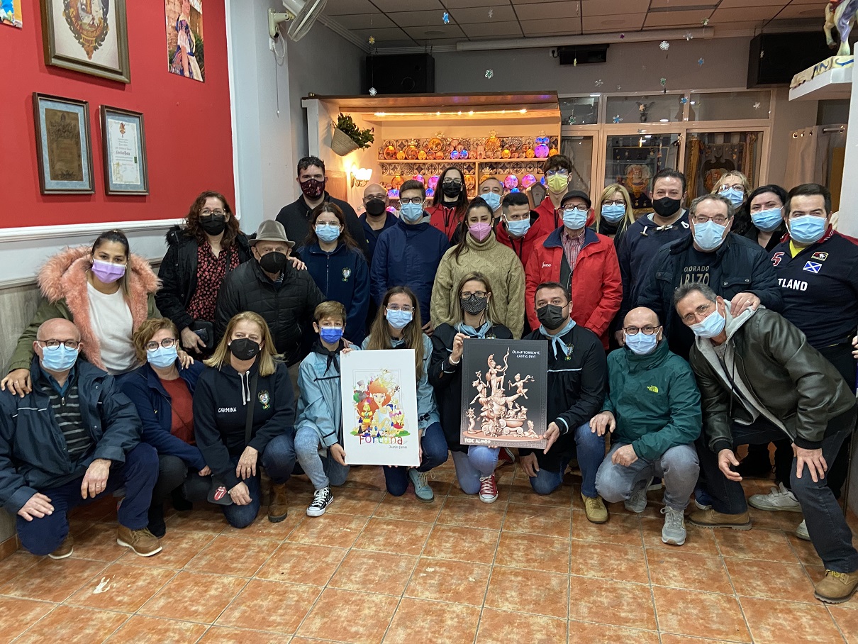Los representantes de la comisión, Mónica García, Miguel Ángel Atienza, Erija Jordán y Ezequiel Atienza se encargaron de desvelar los bocetos de las fallas que militan en sección primera.