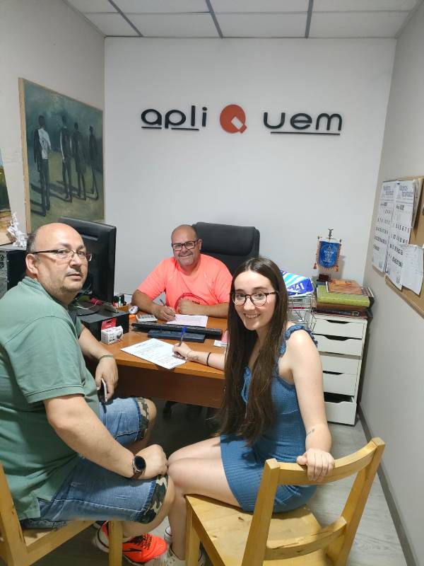 La Falla El Prado de Buñol, representada por su presidente Francisco Monteagudo y la Fallera Mayor de 2023 Andrea Galarza, firman con el artista Juane Cortell para la realización de la falla de 2023.