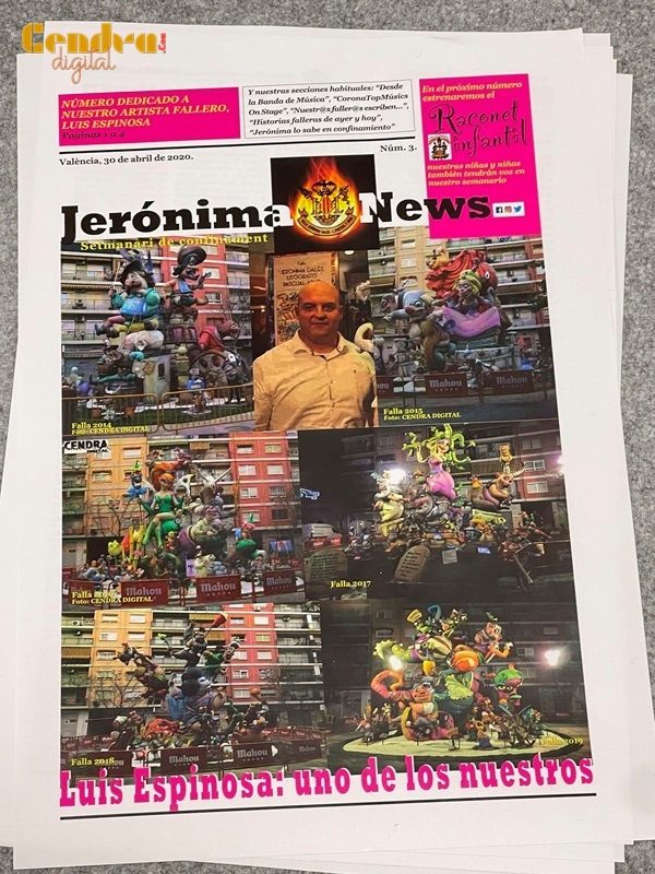 La Falla Jerónima Galés-Litógrafo Pascual Abad homenajea a Luis Espinosa Olmos con motivo de su décimo aniversario plantando en la comisión, dedicándole su semana cultural y una exposición temática.