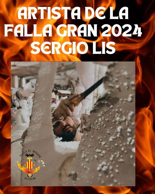 D’altra banda ell ja és part de la nostra essència i ha signat amb lletres d’or la història del Sequer. De sobra és sabut que sempre planta en la nostra plaça un projecte il·lusionant, estem orgullosos d’anunciar que la llegenda continua. Artista de la falla gran per al 2024 SERGIO LIS.