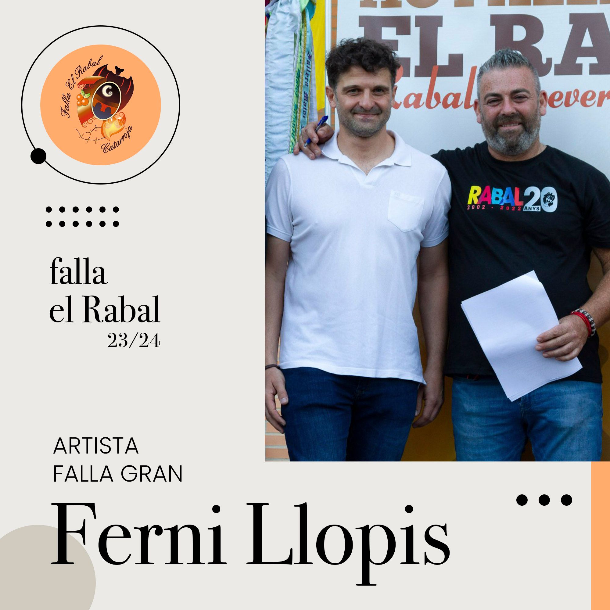 La Falla El Rabal, de la localidad de Catarroja, renueva a Ferni Llopis en la falla grande y ficha a Sandu Ionel para la falla infantil: