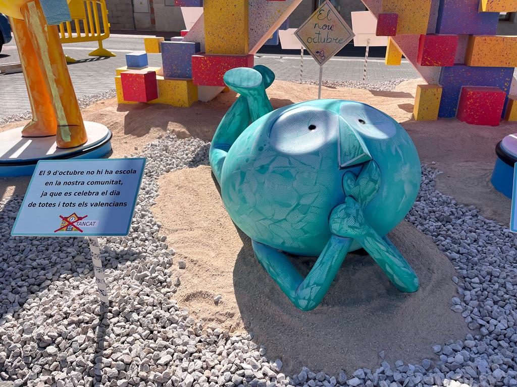 “El nou d´octubre” es el lema de la falla plantada por José Gallego en Beniflá.