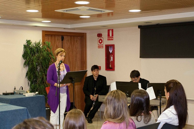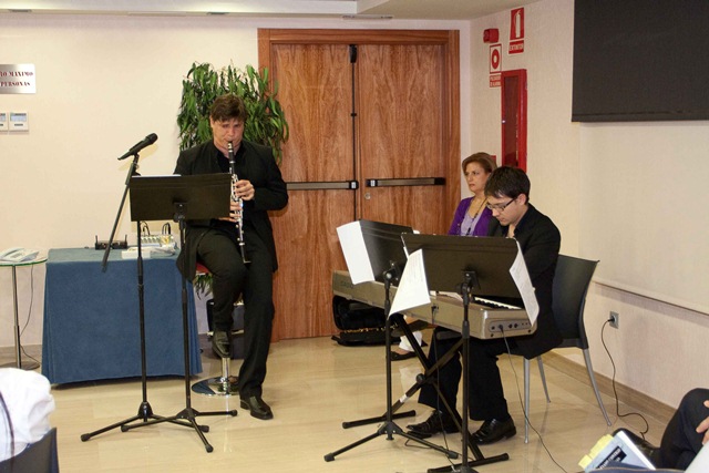 A continuación, el clarinetista David Salinas, colaborador de las orquestas Nacional de España y de RTVE, acompañó a Rubén Jordán, quien interpretó al piano una composición suya como introducción a una selección de poemas leídos por Susana Boluda.