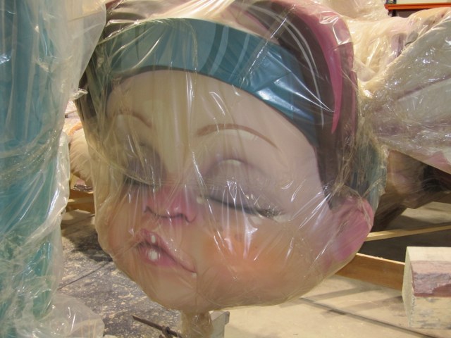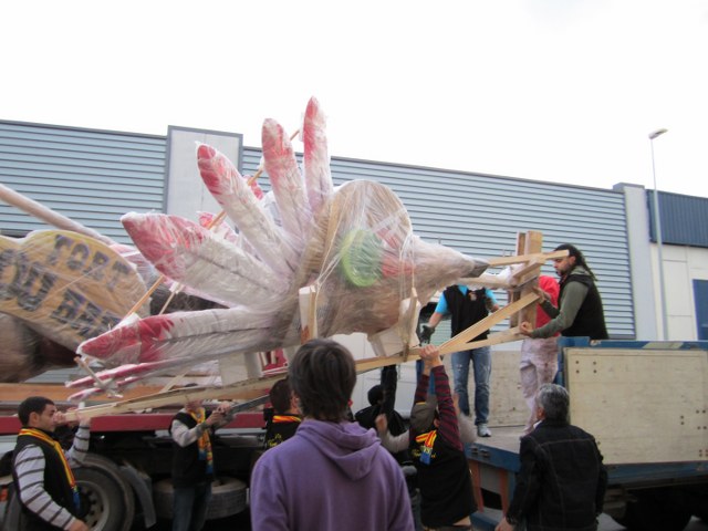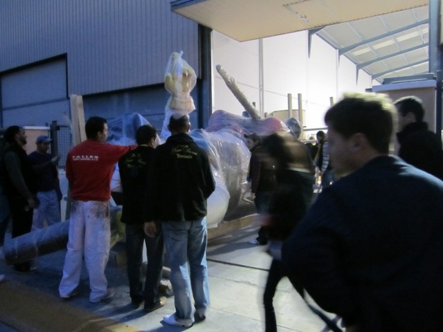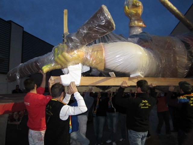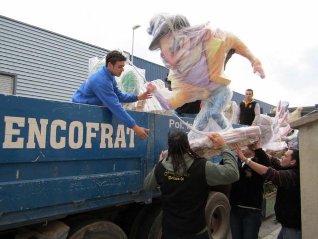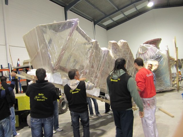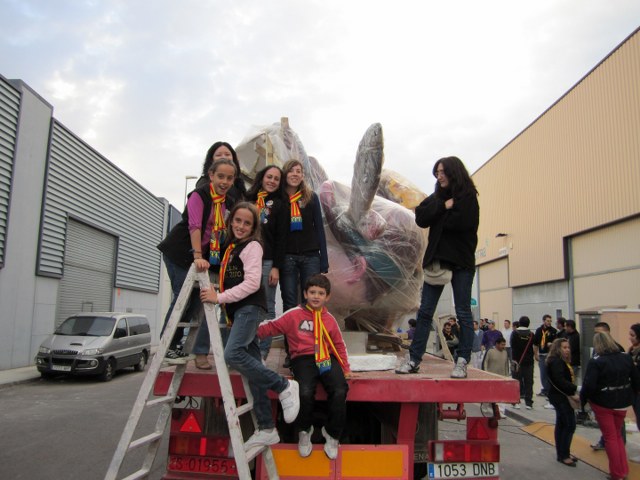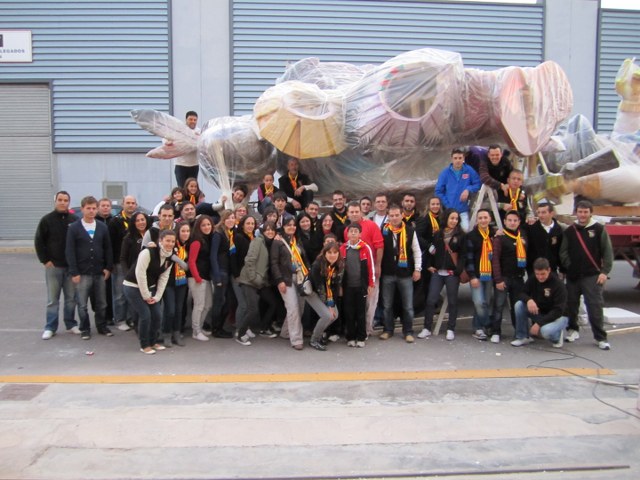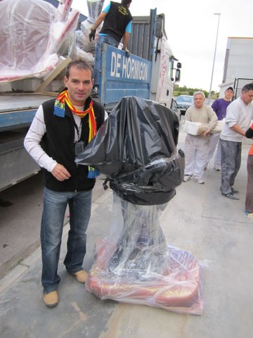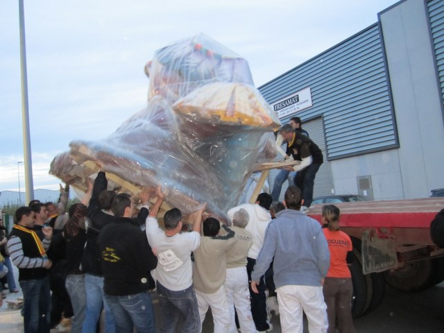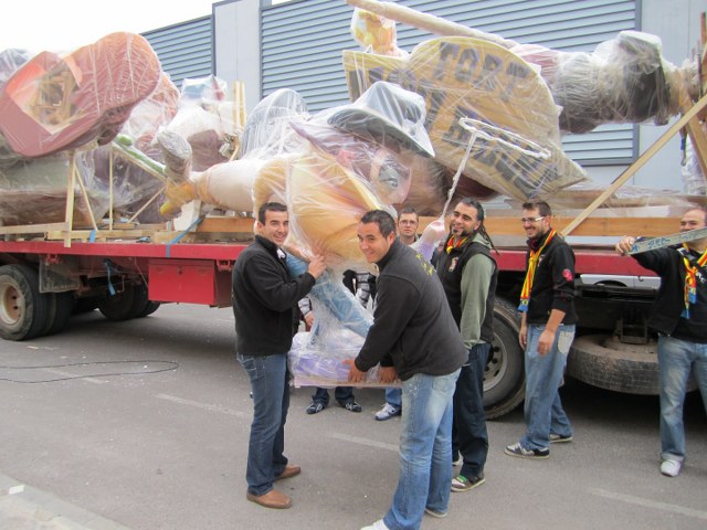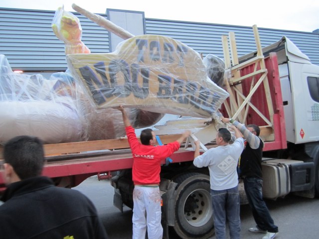La Falla Nou Barri nos envía fotografías del transporte del taller a Benicarló, de la falla grande que realiza Vicente Martínez.