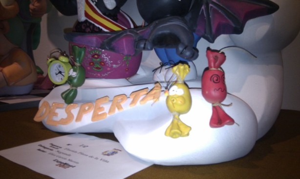 Perteneciente a la Hoguera Florida Plaza La Viña, el ninot está dedicado a la despertà que es el acto preferido de la belleza, que rodeada de relojes y con la mecha en la mano espera con ansía el comienzo del acto para poder encender el primer petardo del día.
