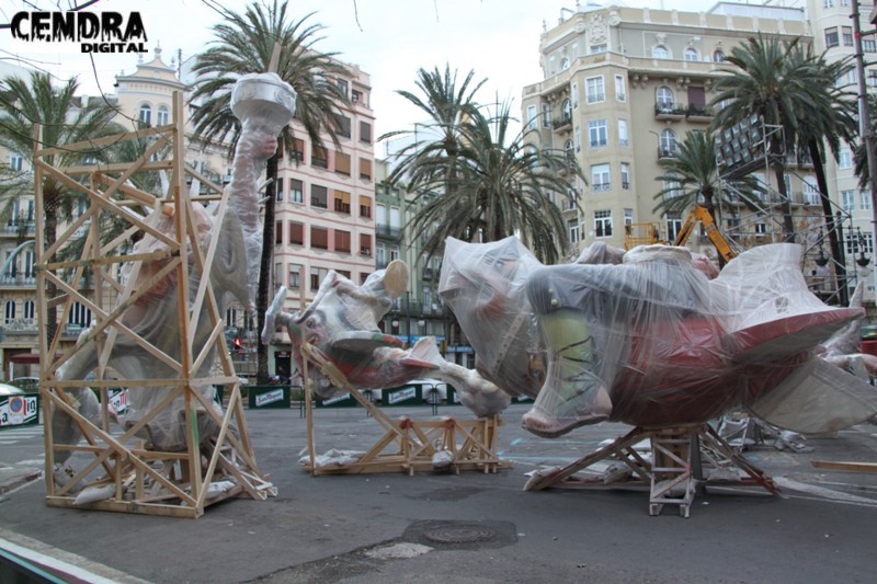 Fotografías de las primeras piezas que han llegado de la falla que realiza Sergio Musoles.