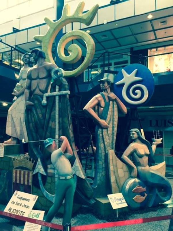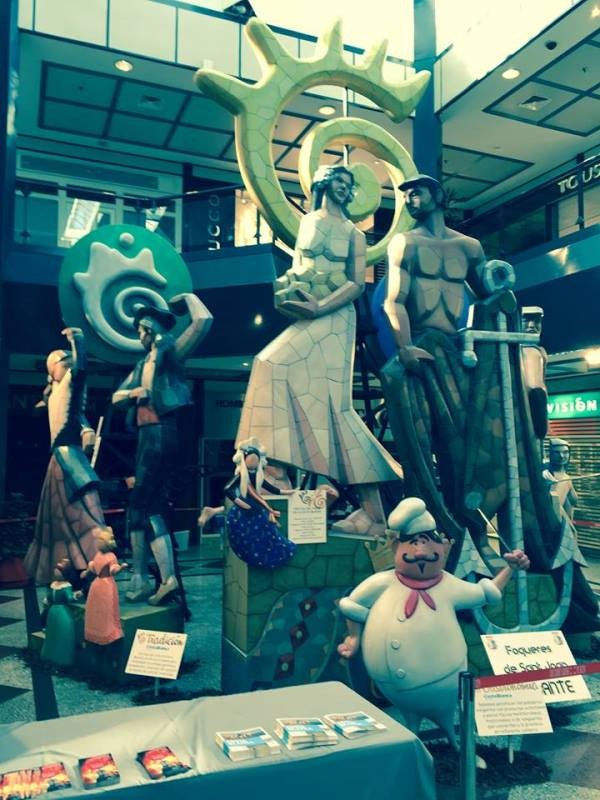 Un original y colorido monumento fogueril preside desde hoy el centro comercial Arturo Soria de Madrid, uno de los más transitados de la capital española.