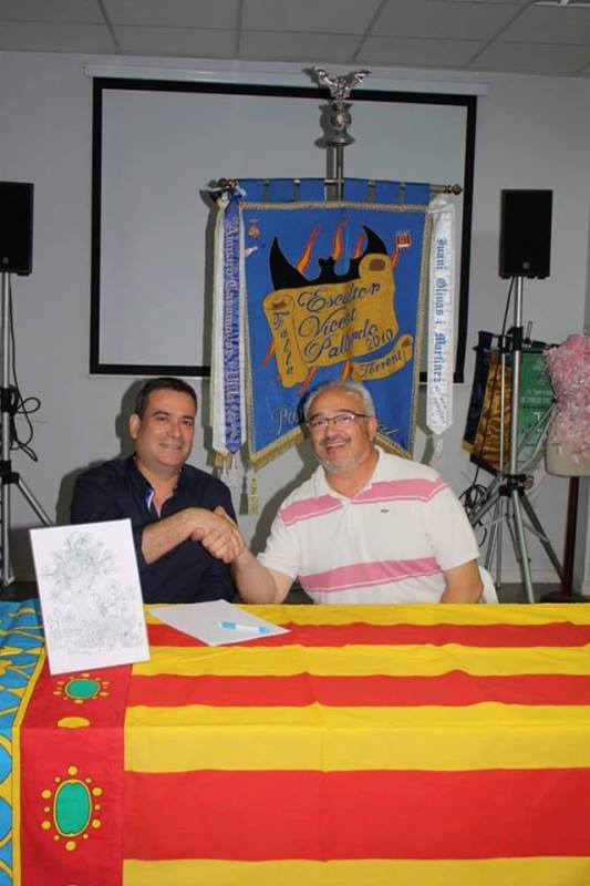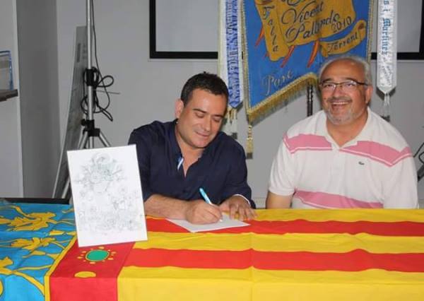 La Falla Escultor Vicente Pallardó, de la localidad de Torrent, ha realizado el acto de firma de contrato con José Luis Pascual Nebot, artista que les va a realizar la falla grande de 2016.