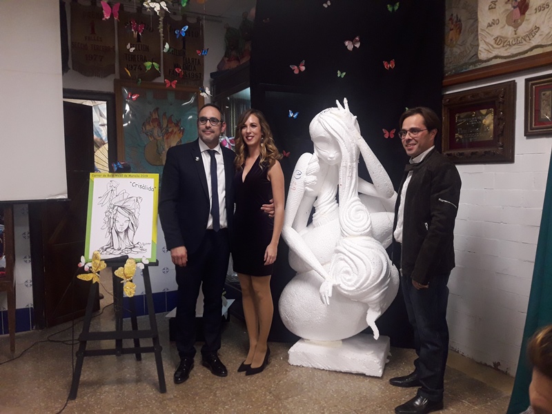 La comisión de Ciudad de Córdoba-Vicente Tomás Martí presenta los bocetos de las fallas grande e infantil que va a plantar el artista Antonio Rubiño en 2019.