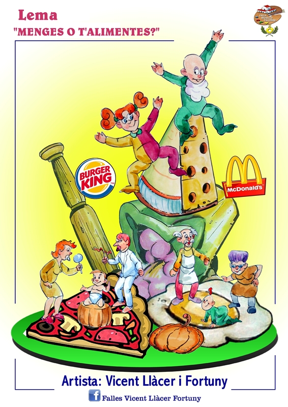 «Menges o t´alimentes?» es el lema de la falla infantil que va a plantar el artista Vicente Llácer Fortuny en la comisión de Murillo-Palomar.