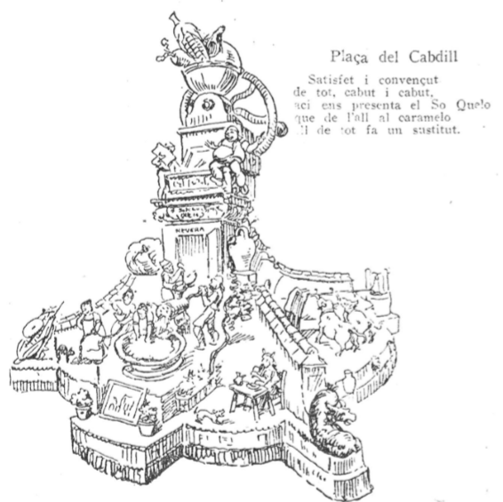 El So Quelo, figura creada por Regino Mas de más versátiles personalidades, muestra en esta falla un labriego que finge ser un industrial de mala fe que confecciona cremas y elixires con verduras y frutas del campo que luego vende como productos milagrosos. Una de las escenas que a los valencianos más impactó, según las crónicas periodísticas del momento, fue la que mostraba un grupo de vacas atadas a grifos y obligadas a beber agua hasta hincharse. criticando así lo que algunos lecheros vendían en sus comercios*