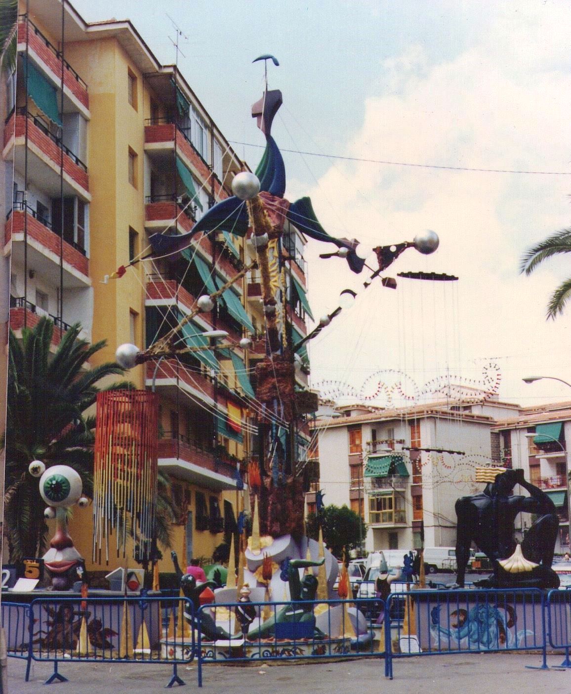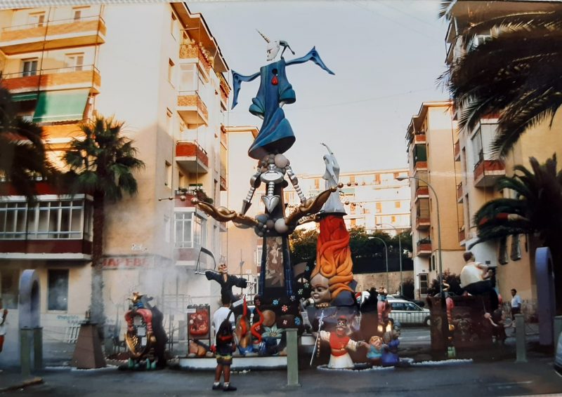 En 1995 firma su primera hoguera para Virgen del Remedio-Oeste (“Del cielo a la tierra”), logrando con ella el ingreso en el Gremio de Artistas de Alicante.