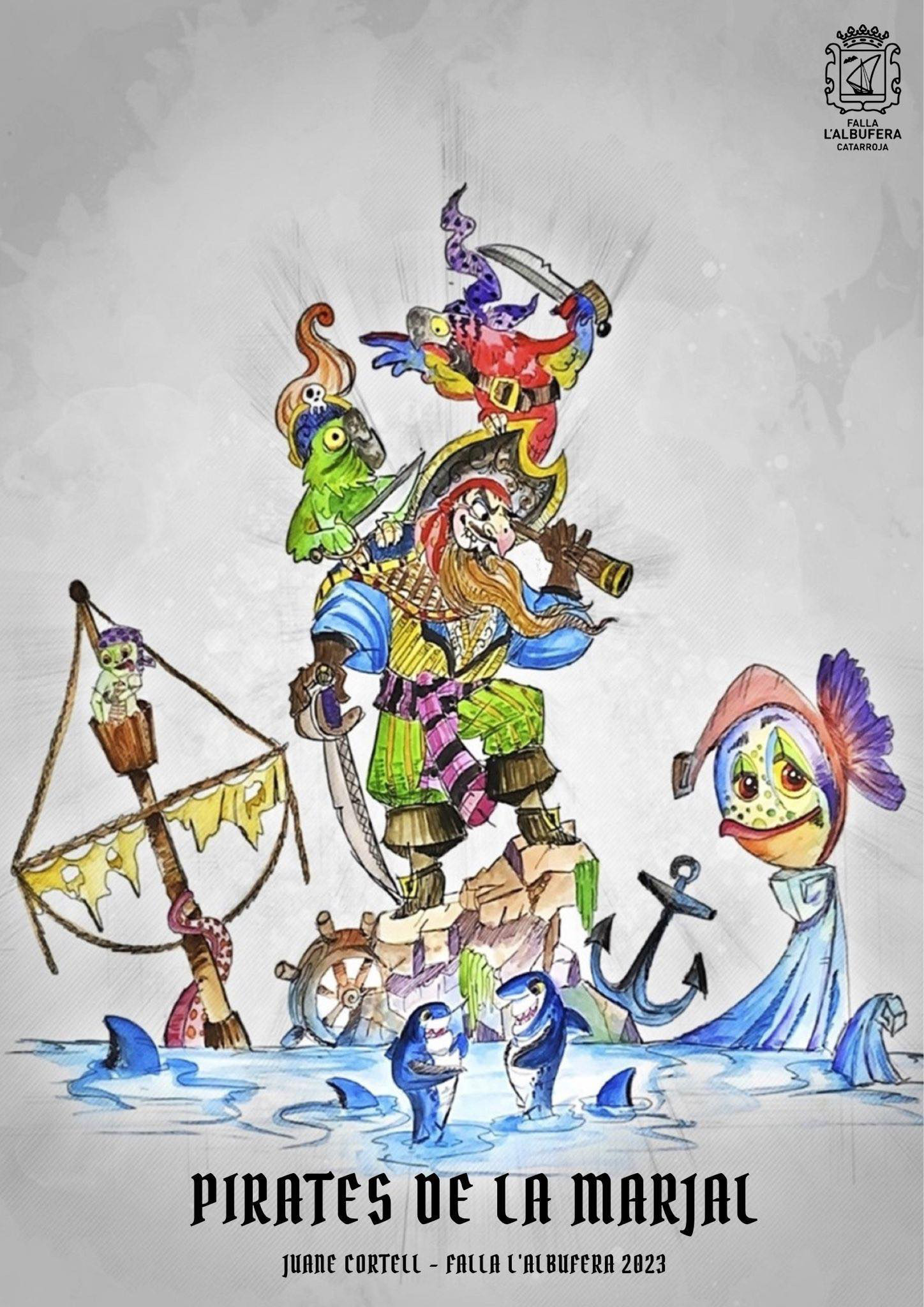 La Falla L´Albufera de Catarroja presenta los bocetos de las fallas que van a plantar Juane Cortell («Pirates de la Marjal») y Fran Sierra («Un passeig per l´Albufera») en 2023.