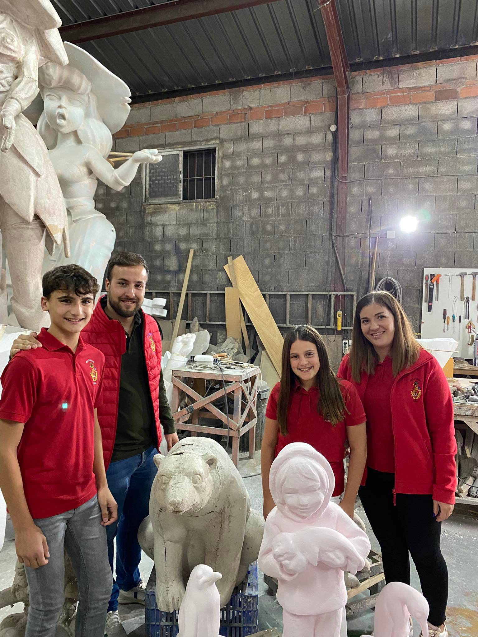 La Falla Rahal, de la localidad de Real, presenta los bocetos de las fallas que van a plantar en 2023, año en el que celebran su treinta aniversario. También han visitado a sus artistas falleros.