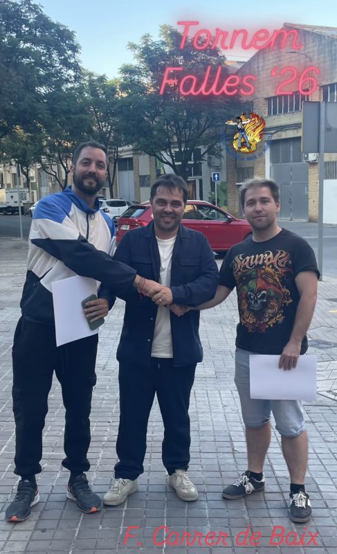 La Falla Carrer de Baix anuncia la renovación de Cristian García Carrasco para hacer la falla grande y la de Vicente Domínguez para realizar la falla infantil de 2026.