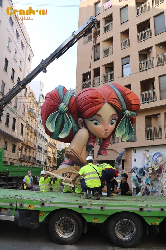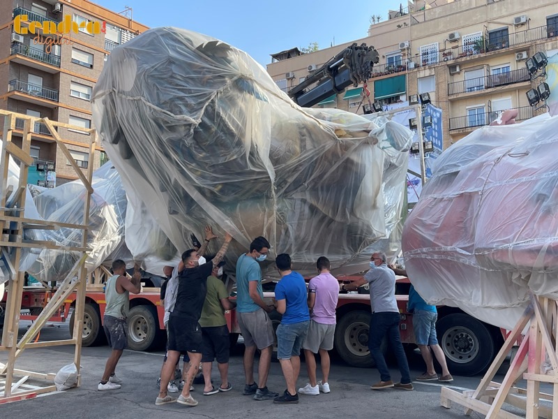 Tras cerca de año y medio almacenadas, las piezas de las fallas han comenzado a ser transportadas desde Feria Valencia a sus emplazamientos.