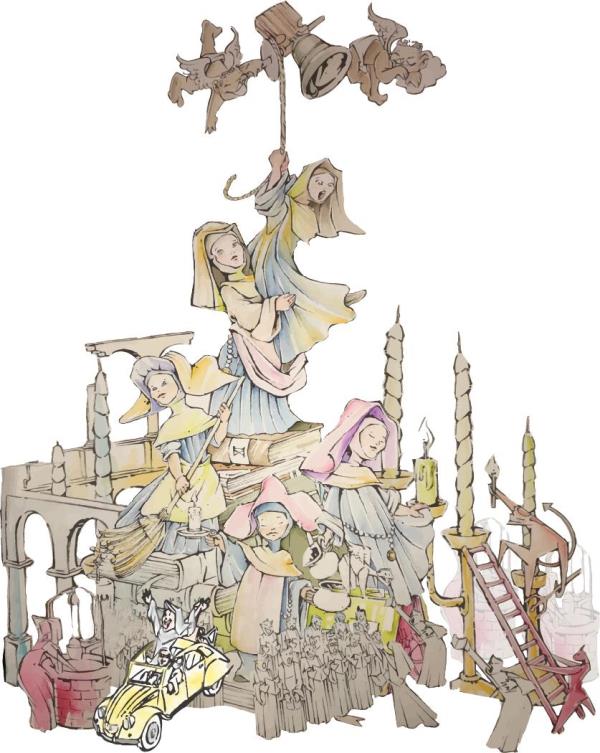 Bocetos de las fallas grandes de València que participan en sección especial.